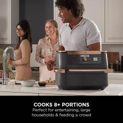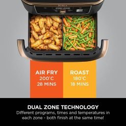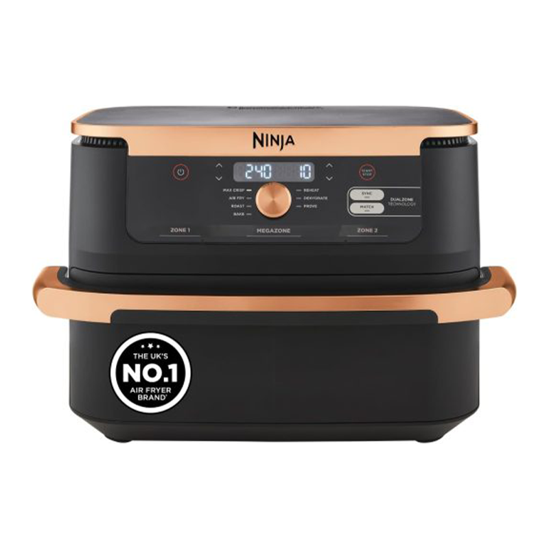 Ninja Foodi FlexDrawer Air Fryer. Dual Zone with Removable Divider. Large 10.4L Drawer. 7-in-1. Air-Fryer. Air Fry. Roast. Bake. Crisp. Non-Stick Dishwasher Safe Parts. Black and Copper. AF500UKCP