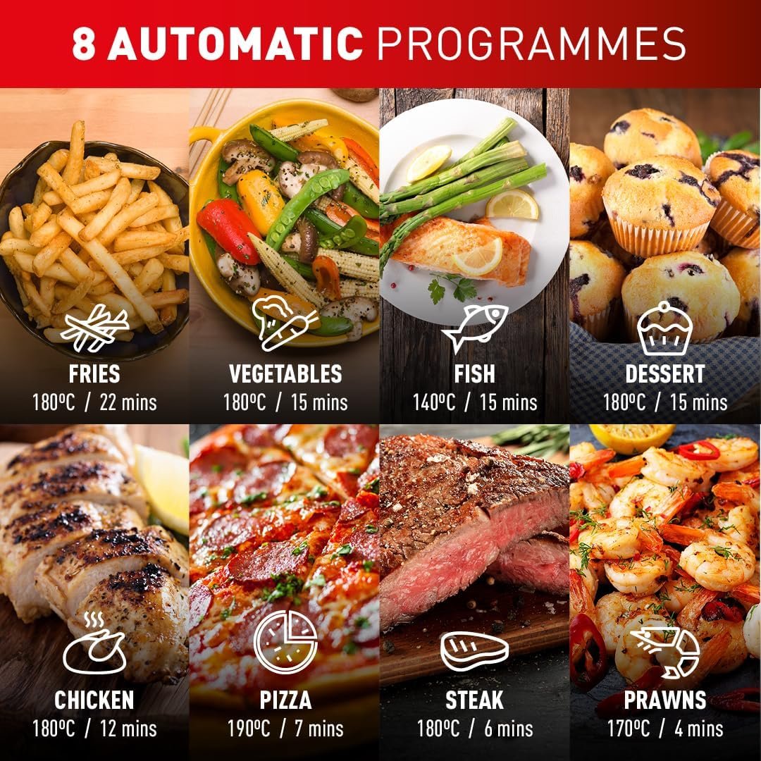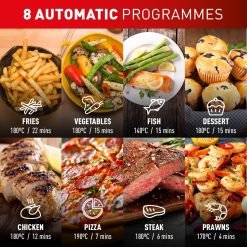 - PRECISION COOKING: 8 preset programs and 1 manual program. and high-precision temperature and time control (from 80°C to 200°C. up to 60 minutes) via the rotary knob. for perfect results on any recipe