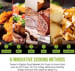 - DUAL BASKET TECHNOLOGY: By selecting the Dual option on your air fryer you can match the settings in both baskets making it possible to cook twice as much food in one go. Perfect for cooking full family meals or larger portions of your favourite food
