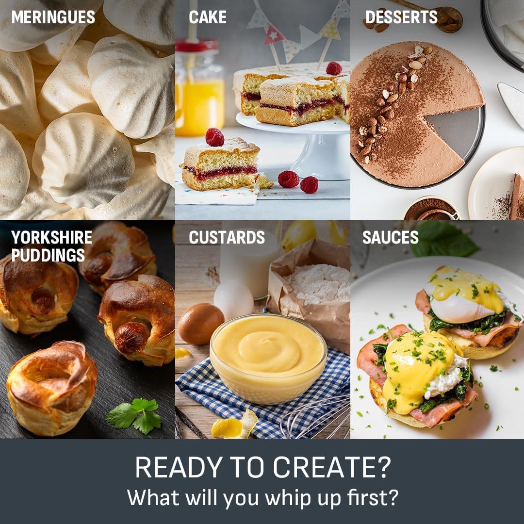 - DUAL WHISK SYSTEM FOR PERFECT RESULTS: includes 2 stainless steel whisks for fluffy batters and creams. delivering great textures and dishwasher-safe durability.