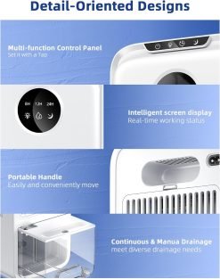 Dehumidifier. 2500ML Dehumidifiers for Home. Quiet Dehumidifiers for Drying Clothes with Drainage Hose.Auto-Defrost|LED Light|Auto-off.Bathroom Dehumidifier for Wardrobe Basement Garage RV