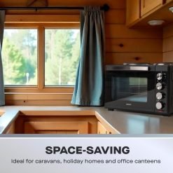 - 32 LITRE CAPACITY – Suitable for small kitchens. student accommodation. apartments. caravans. or individual use with space saving design. Easily roast meats and vegetables. bake cakes and cookies. grill sandwiches and paninis or boil veg and pasta