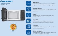 - 20 litre oven space – enough space for your dishes