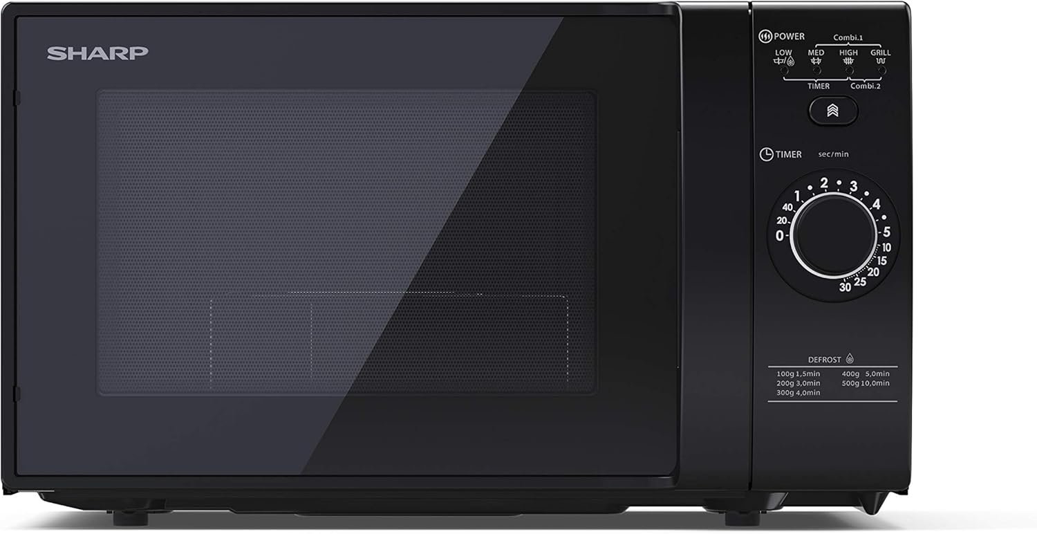 The SHARP YC-GG02U 700W microwave & 1000W grill offers a contemporary look design with a sleek black finish complemented by a black door window and control panel. the perfect addition to any kitchen.