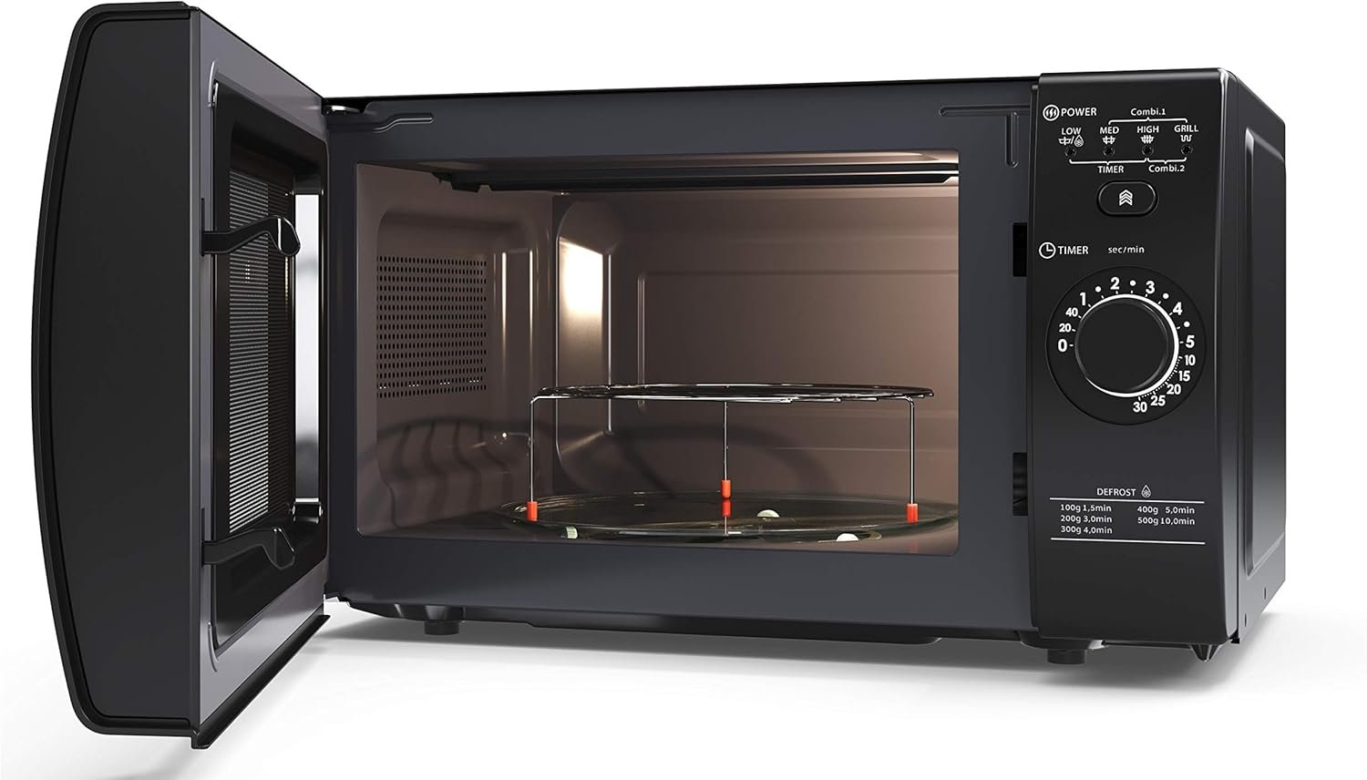 - Stylish 700 watt microwave oven and grill: With a compact 20 litre capacity and a turntable with 3 levels of microwave power plus 3 grill combination settings