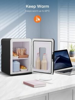 - 【Available in All Seasons】The mini fridge can be used all year round to keep drinks and food cold or warm. Two temperature settings are available: cooling to 10°C to 18°C below ambient temperature or keeping warm to 55°C to 65°C.