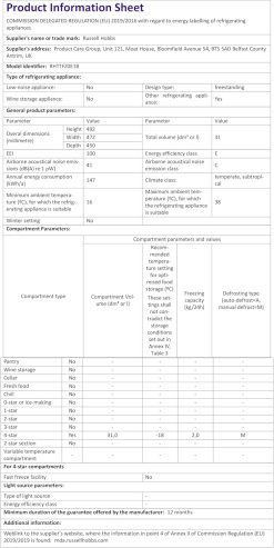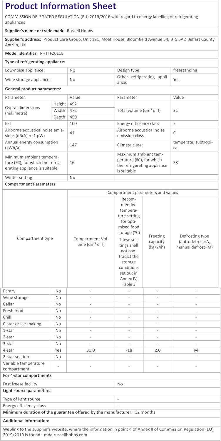 - 1-YEAR GUARANTEE – For added peace of mind. this Russell Hobbs Table Top Freezr comes with a 1-Year Guarantee. This way in the unlikely event something goes wrong. you know we’ll always be on hand to help