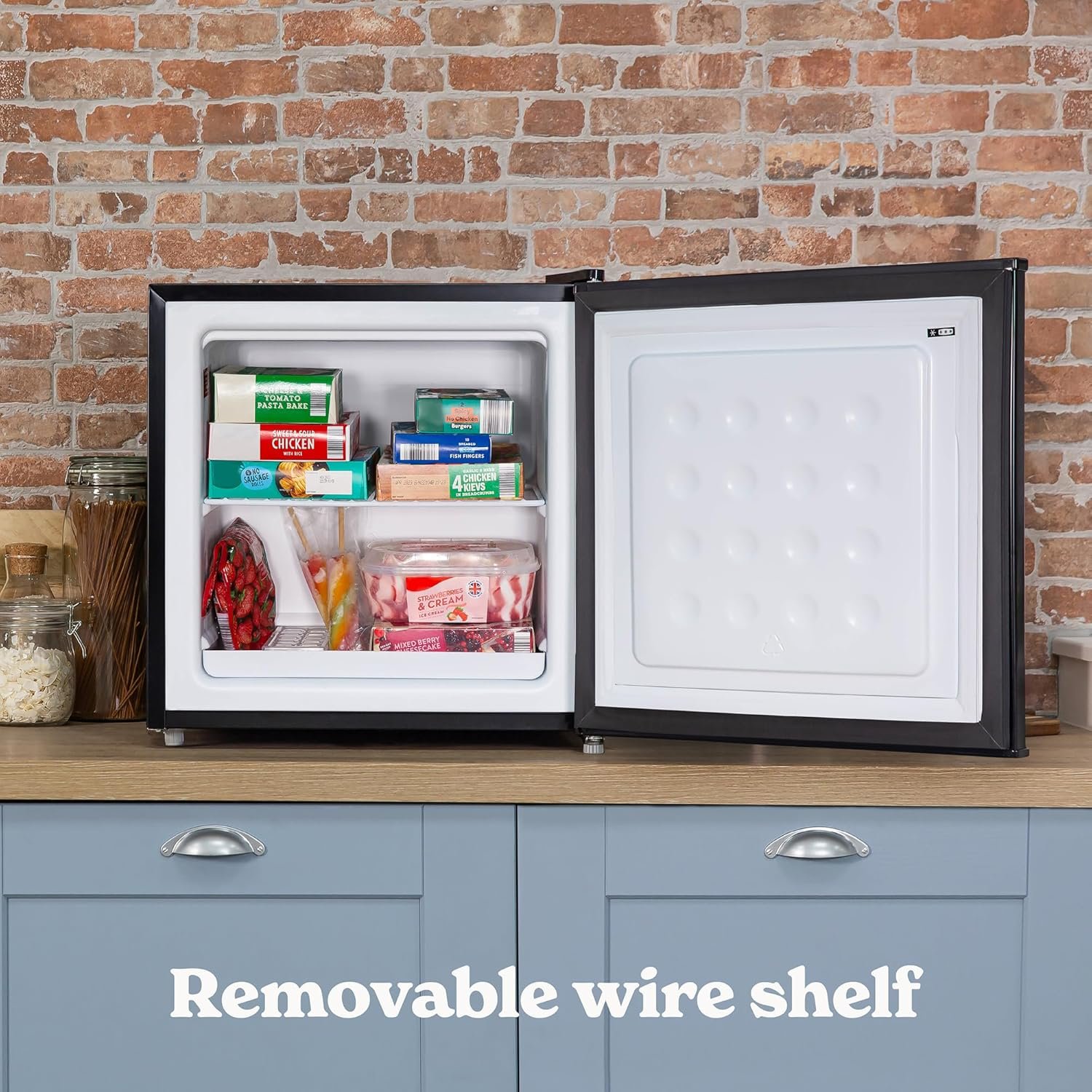 - EFFICIENT STORAGE – Offering 31L space. this table top freezer is perfect to use as an overflow freezer or to keep your favourite snacks and drinks handy. With 1 shelf and ice box it’s easy to keep your frozen goods organised