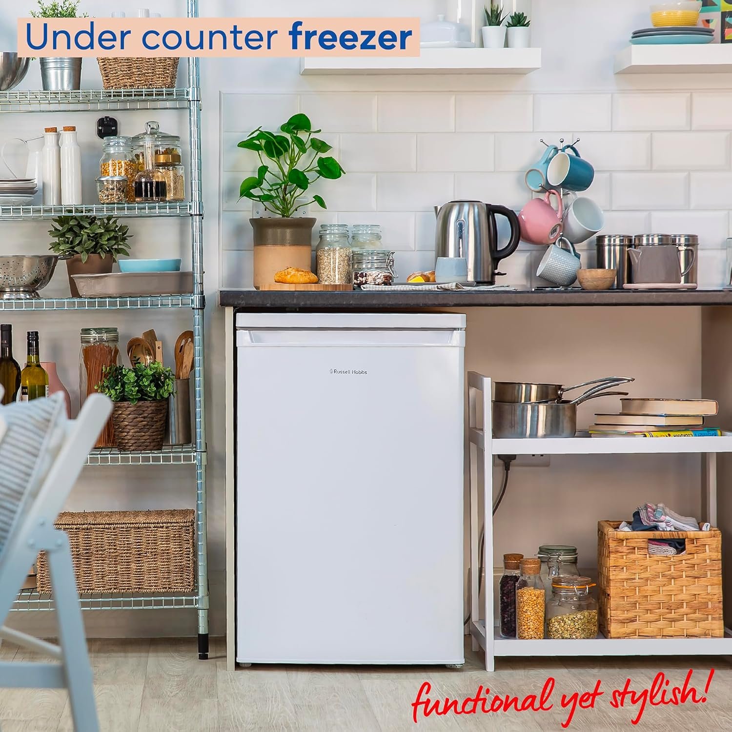 - UNDER-COUNTER – If you’ve run out of room in your main freezer. this under-counter appliance is perfect for extra storage in your kitchen or utility room. and measuring at 55cm wide by 85cm high the slimline design allows it to seamlessly slot in between standard kitchen units