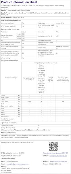 - 2-YEAR GUARANTEE – For added peace of mind. this Russell Hobbs Undercounter Larder Fridge comes with a 2 -Year Guarantee upon registration. This way. in the unlikely event that something goes wrong. you know we’ll always be on hand to help.