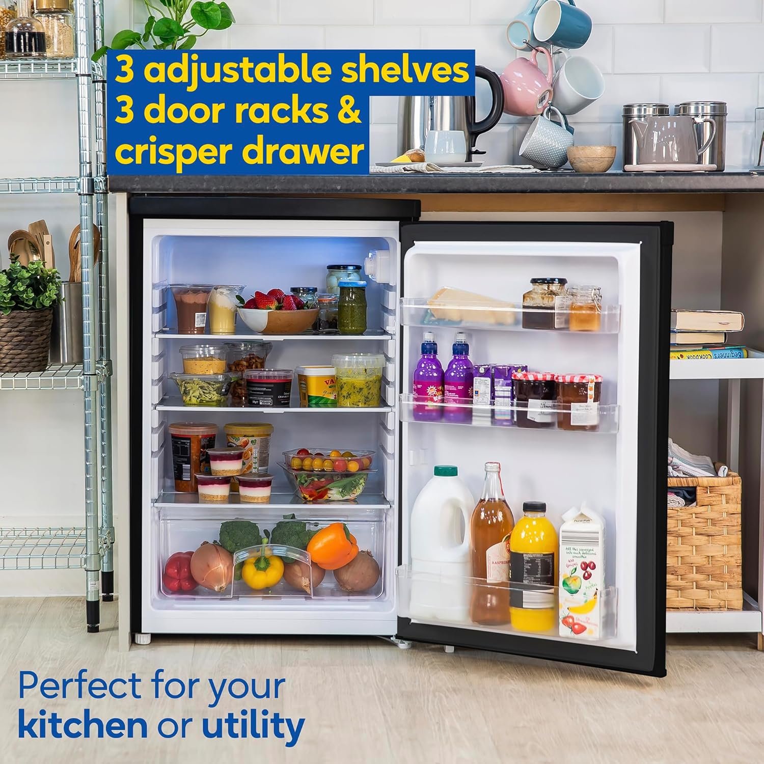 Looking for some extra fridge space to store your fresh food? The Russell Hobbs Undercounter Larder Fridge is the ideal solution. Built with practicality in mind. this fridge is compact in size and fits in seamlessly in any home. It also features adjustable feet to ensure full stability on any floor and a manual temperature control so that you can rest assured knowing your food is always chilled to perfection. Built to hold an impressive 127L. this fridge offers plentiful storage. with 3 shelves (2 of which are adjustable to make space for bottles and taller condiments. along with 3 door racks and a salad crisper for added convenience. For added peace of mind. this Russell Hobbs Undercounter Larder Fridge comes with a 2 -Year Guarantee upon registration. This way. in the unlikely event that something goes wrong. you know we’ll always be on hand to help.