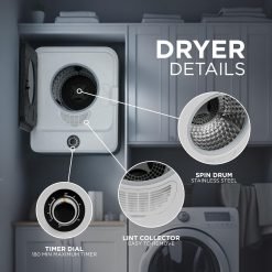 - TIME-SAVING CONVENIENCE: Choose time-saving. space-efficient drying by investing in our Mini Tumble Dryer today. With its compact design. customizable cycles. and powerful performance. it’s the ideal solution for those looking for a convenient and efficient way to handle their laundry needs.