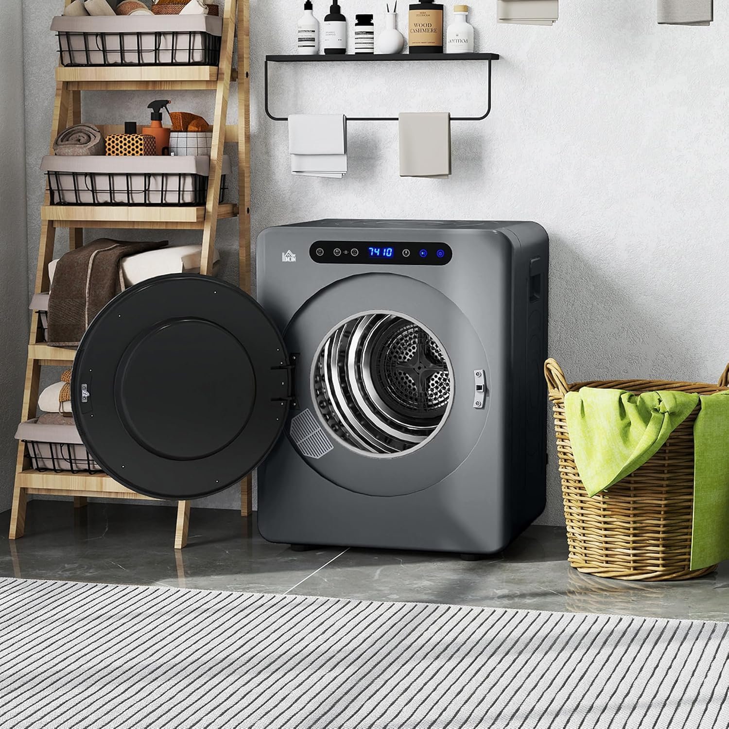 - Compact. space-saving design: Portable dryer is great for smaller spaces and flats. Use freestanding or stacked with a bracket (bracket not included).